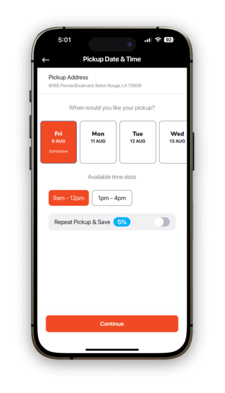 Let us do it all for you with Pickup & Delivery service! Forget about hauling heavy bags and baskets and simply schedule a pickup time in the app. We’ll pick up your laundry—from your home, office or wherever—and return it the next day, expertly washed, dried and folded.